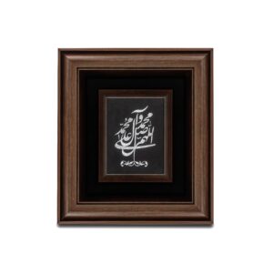 • جنس :چوب ، نقره • برای ساخت این تابلوهای نفیس از ورقه های نقره با عیار 925(دارای گواهی استاندارد از متالوژی رازی)به ضخامت 92 میکرومتر استفاده شده که روی یک لایه پلیمر قرار گرفته است. اندازه قاب 34*30 رنگ بژ، قهوه ای و مشکی